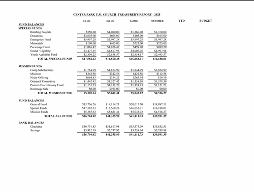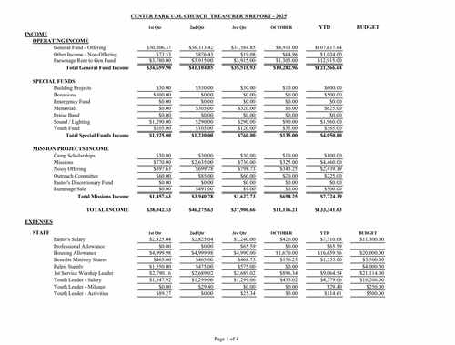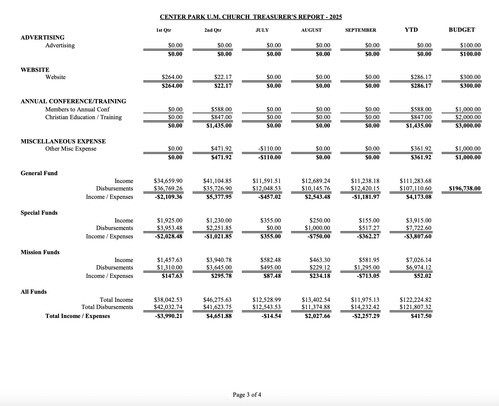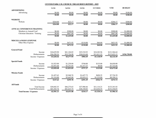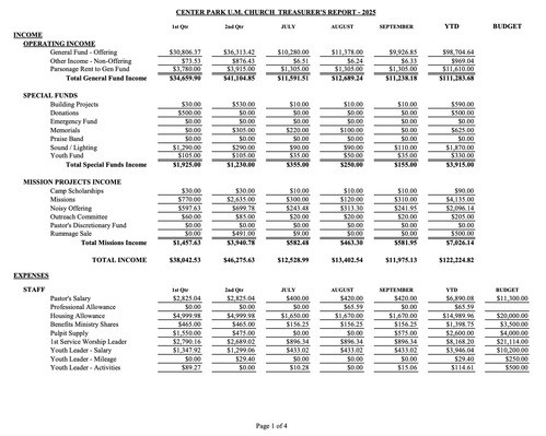 2023 Proposed Budget Center Park UMC