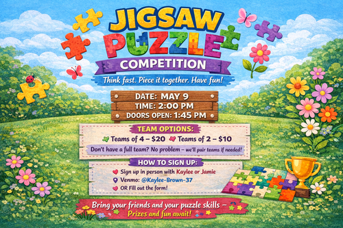 Grab a partner or partners and put your puzzle skills to the test! Teams of 4 will race to see who can piece it all together first.