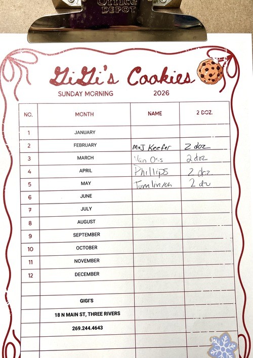 We have been supporting GG's Cookies for almost 5 years in various ways here at Center Park. One simple way we keep showing that support is by bringing a couple dozen GG's Cookies once a month to share on a Sunday morning. If you'd like to be a part of that support, please sign up in the hallway.