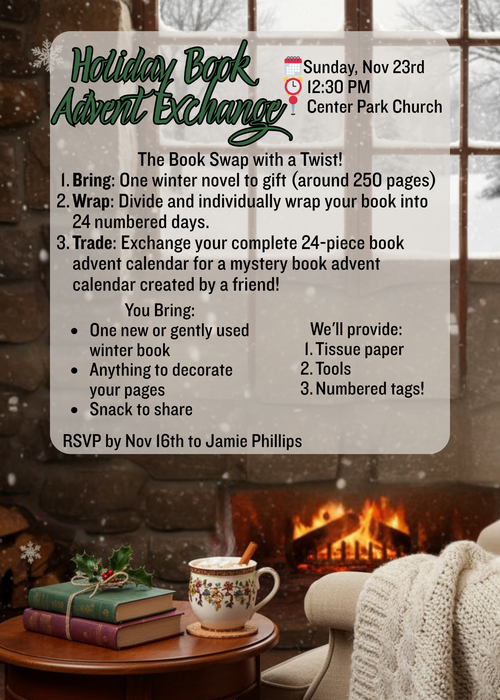 We’ve been invited to have our kiddos share a bell choir piece at the Make We Merry Christmas show this December but...We’re looking for someone who’d love to take the lead on organizing the bell choir! The show runs Dec 5–7 (7–9pm & 2–4pm) at the Riviera Theatre in Three Rivers. Details about rehearsals are on a flyer on the hallway bulletin board. Would you be interested in leading this?