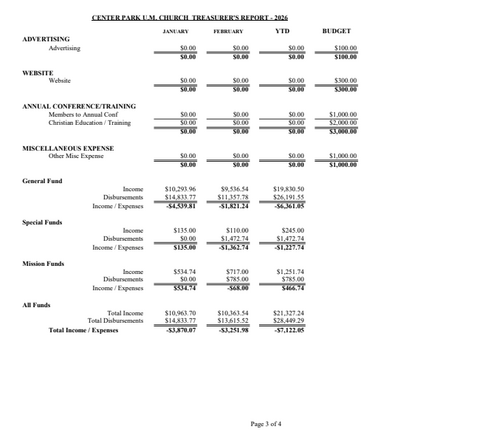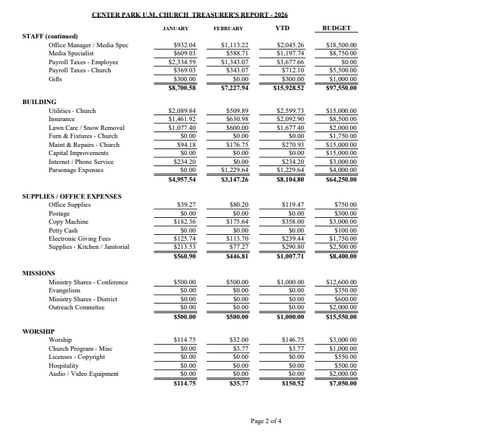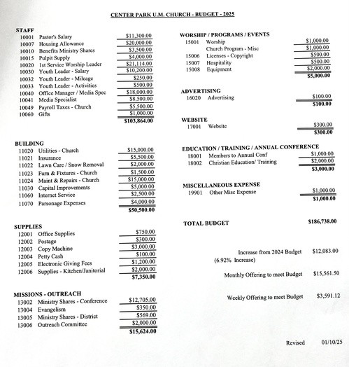 2023 Proposed Budget Center Park UMC